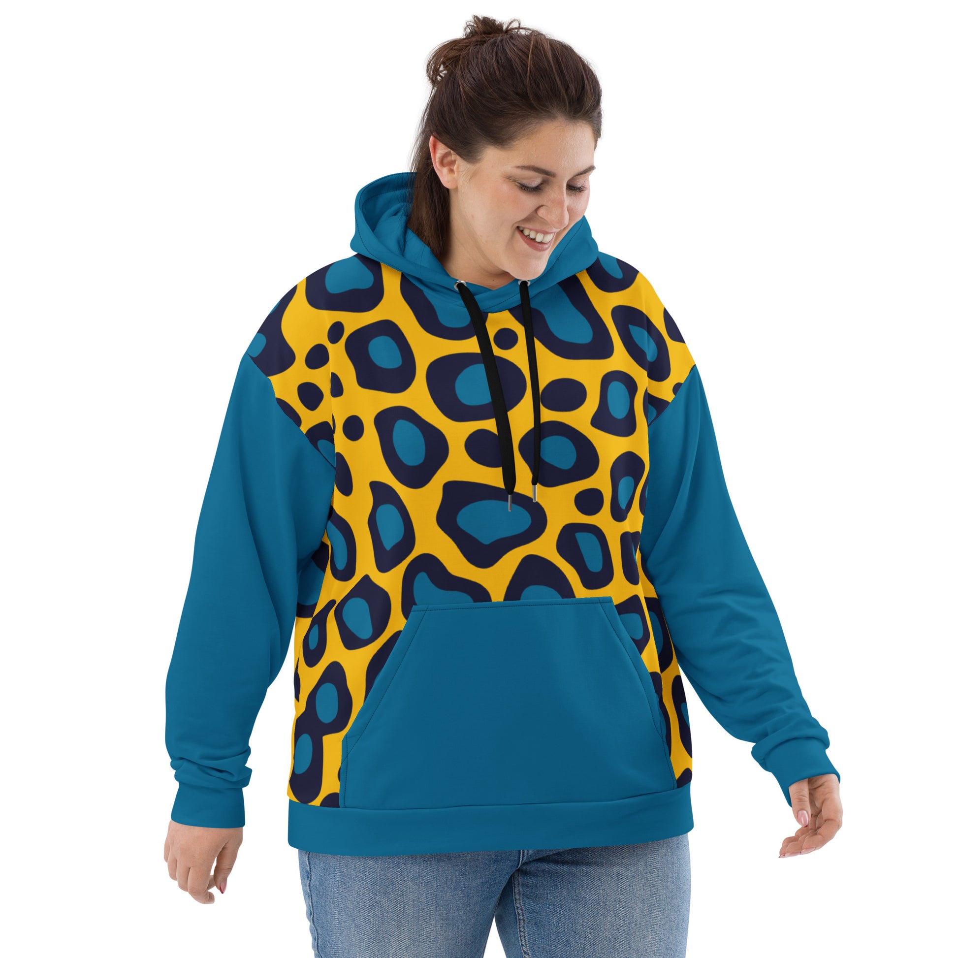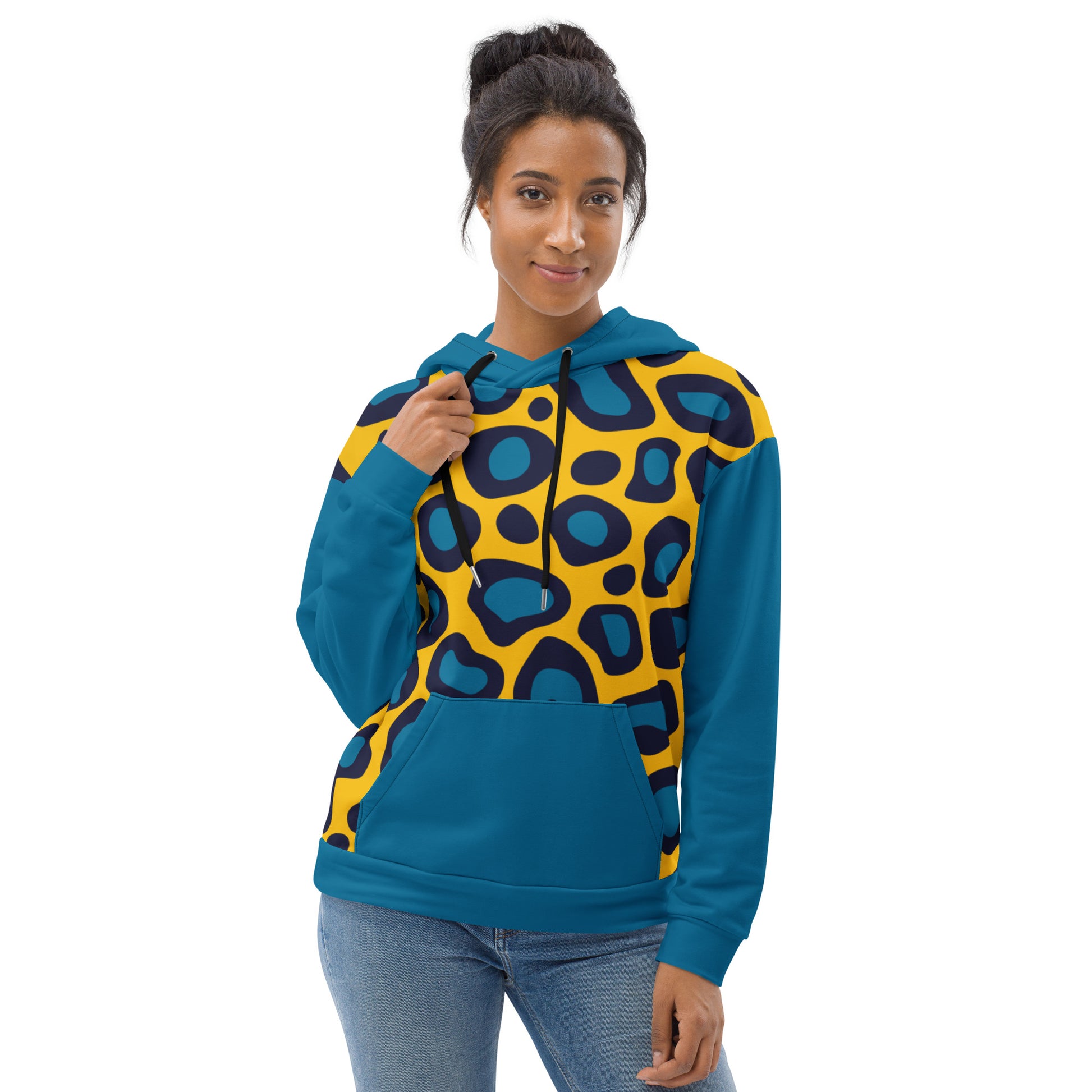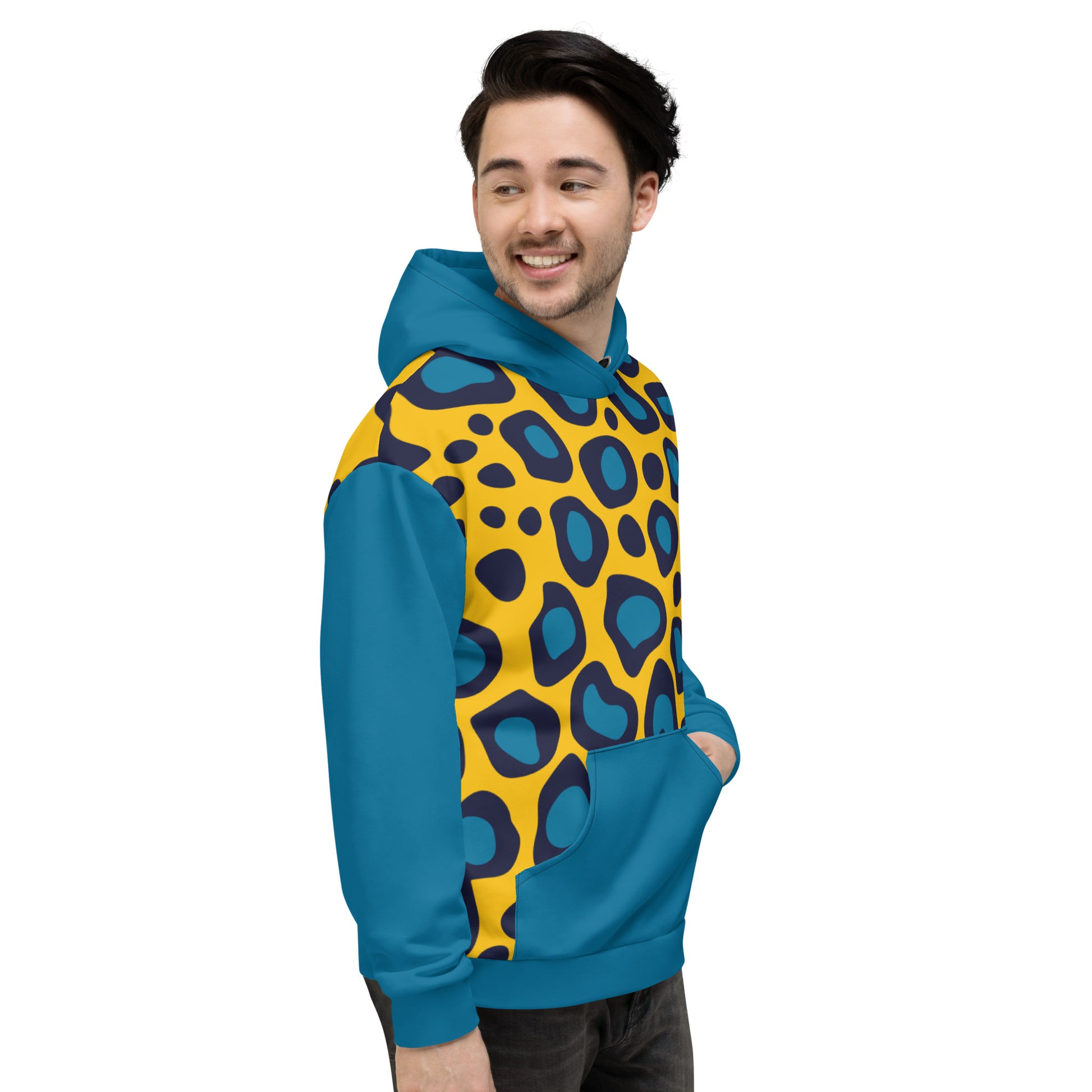 This comfy Yellow Leopard Unisex Hoodieunisex hoodie has a soft outside with a vibrant print and an even softer brushed fleece inside. The hoodie has a relaxed fit, and it’s perfect for wrapping yourself into on a chilly evening.
