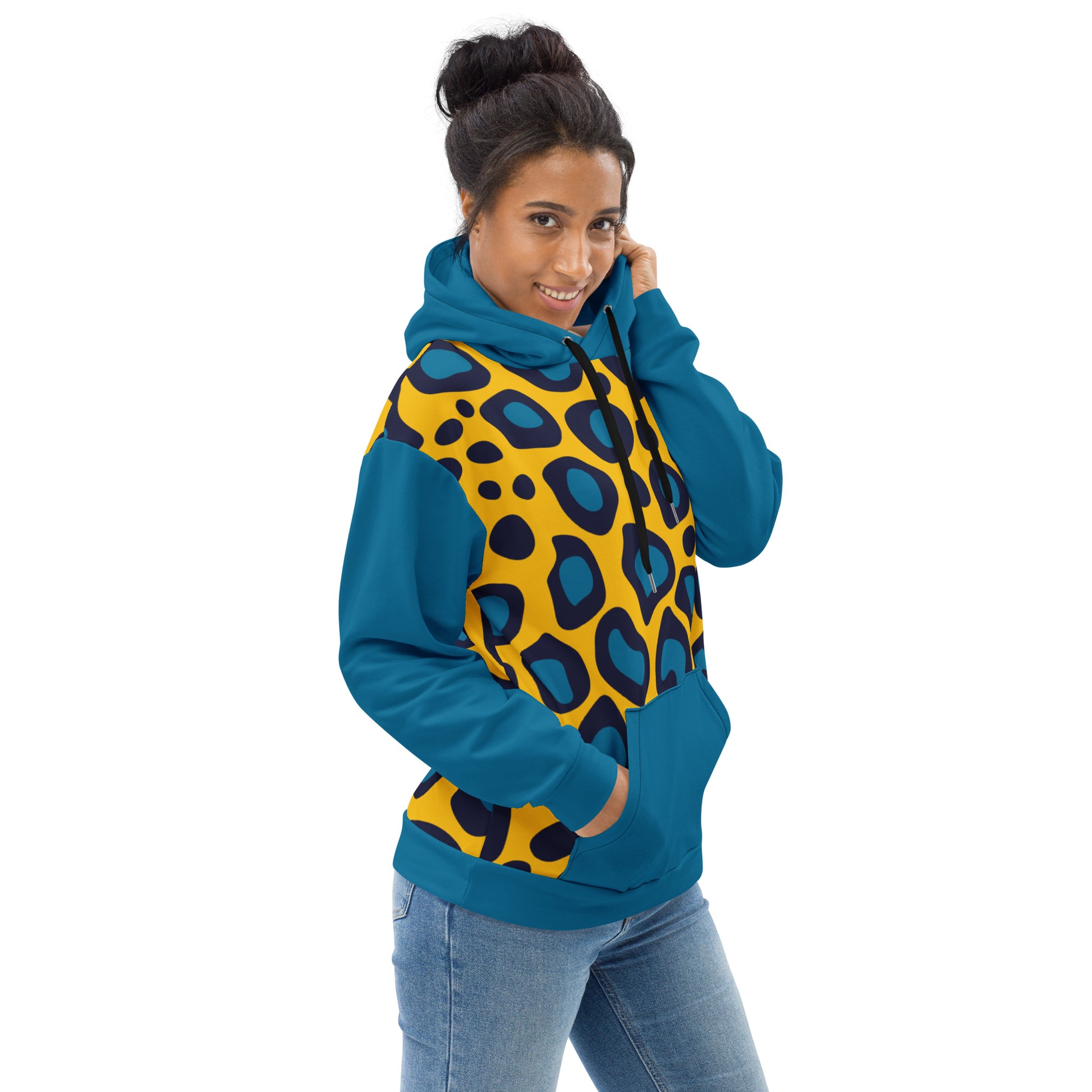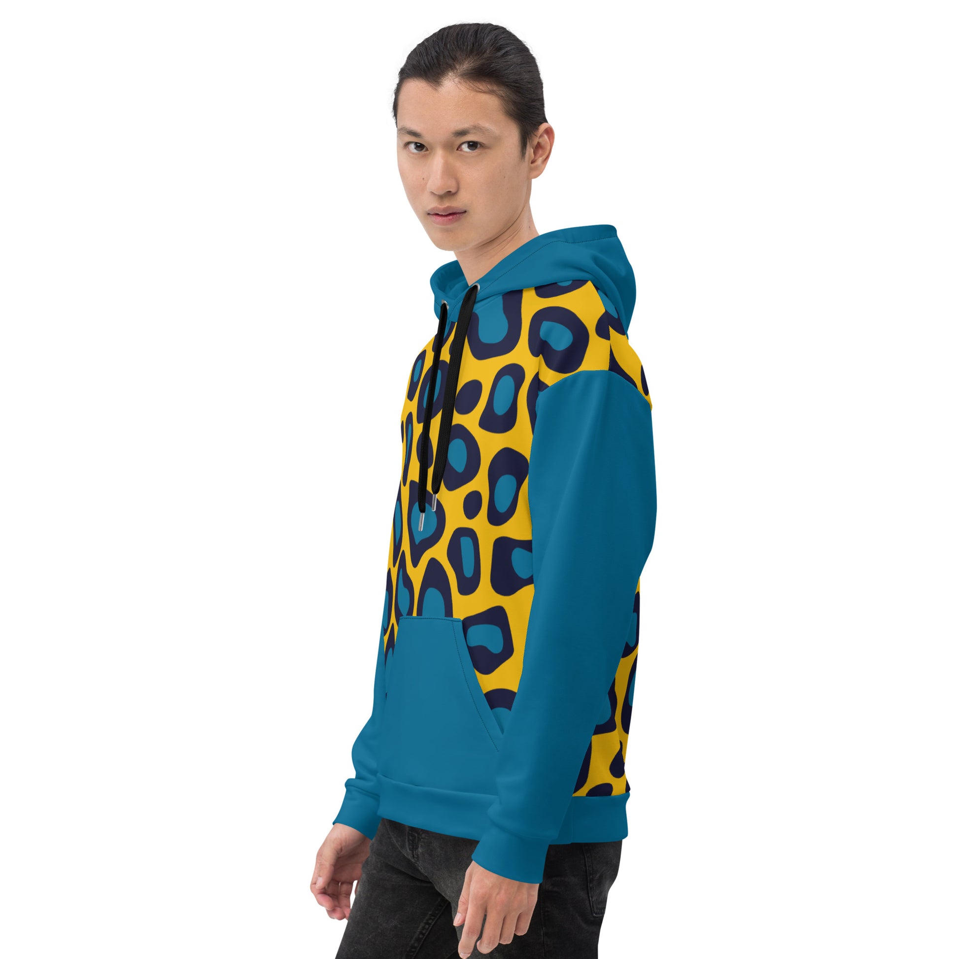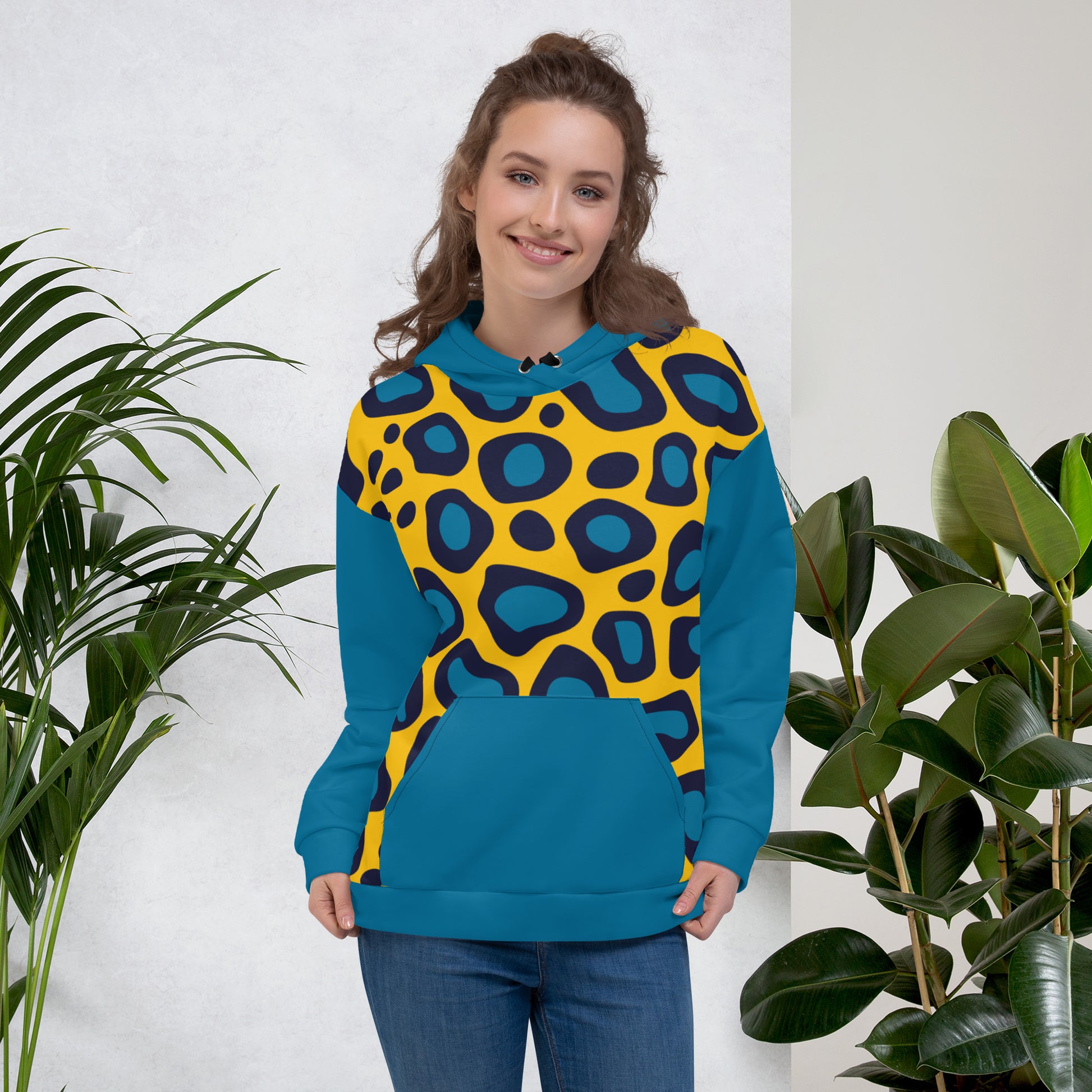 This comfy Yellow Leopard Unisex Hoodieunisex hoodie has a soft outside with a vibrant print and an even softer brushed fleece inside. The hoodie has a relaxed fit, and it’s perfect for wrapping yourself into on a chilly evening.